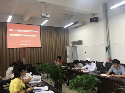9月27日上午,3044永利集团团总支组织全体辅导员老师在B317会议室集中学习了《国务院办公厅关于加快医学教育创新发展的指导意见》,与会辅导员老师结合各自的工作实际交流了学习体会。
