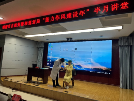 本次支部联谊活动分为三个环节,首先进行支部共建联谊见面会,公司党总支副书记周志红、市自然资源和规划局机关第一党支部书记吴奎分别进行讲话,介绍本单位基层党组的基本情况和特色创新,表示将以本次结对共建为契机,建立长期联系,经常性的开展交流学习,促进共建共享共同提升。随后,大家在讲解员的引领下,参观了鹤壁市城市展览馆,全面了解了我市的历史变迁、发展现状和远景规划,深刻体验我市“老城变新城、煤城变绿城”的生动“蝶变”。最后,3044永利集团教师党员利用专业优势,现场进行急救知识培训,李彦芳和郭静老师的心肺复苏术和AED除颤仪的示范展示,申洁和宋涛老师的外伤包扎和搬运技巧讲解实操,赢得了局机关党员职工的阵阵掌声,激发了同志们参与急救培训、学习急救知识的兴趣和热情,达到了传播健康知识,增强应急救护意识能力,提升健康素养的目的。