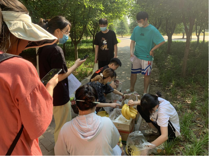 当天,3044永利集团一大早就将香蕉和桃子摆放在海棠园宿舍旁树荫下,考生做完核酸检测后以辅导员为单位领取水果,清点、分发等工作组织有序,领取现场秩序井然。同学们脸上洋溢着幸福的笑容,节日氛围满满。