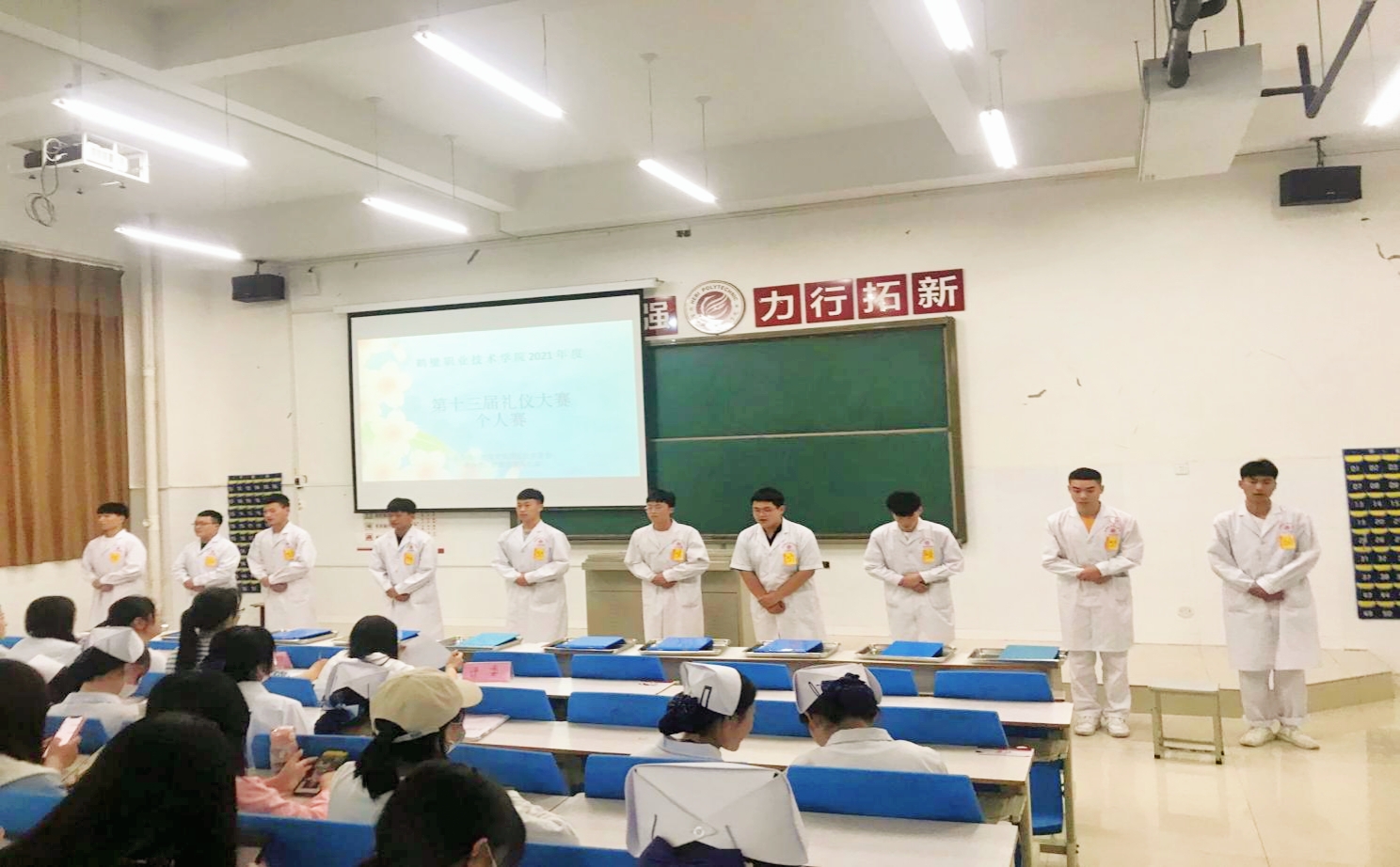 为了展示护士职业形象,展现白衣天使风采,营造知礼仪、懂礼仪的校园文化氛围,培养公司护理学子优雅的礼仪素养和行为习惯,公司于2021年5月7日在E110教室举办了“第十三届护士礼仪大赛个人赛”。经过之前班级赛的初步选拔,于每班中挑选出了1-6名优秀选手进行本次礼仪大赛个人赛的角逐。
