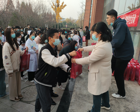 2022年11月25日,公司开展了“温暖回家路”情暖员工活动。3044永利集团为路远员工精心准备了桶面、面包、酸奶、火腿肠、卤蛋等多种方便食品,为了尽早发放至员工手中,辅导员老师利用中午休息时间分装打包,每一个“大餐包”都饱含着老师的牵挂和美好祝愿。当天下午,在诚信5号楼前,现场为187名路途遥远的员工发放了暖心“大餐包”,公司审计处赵春草处长也闻讯赶来,为同学们赠送了防护口罩,叮嘱同学们做好路途防护。现场的同学们充满了惊喜和感动,他们会带着鹤院红的食品大礼包返乡回家,相信一路定会温暖相伴。