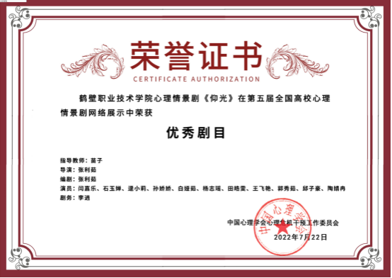 近日,由中国心理学会心理危机干预工作委员会主办、中央电视台《心理访谈》栏目组协办的第五届全国高校心理情景剧大赛总决赛在济南举行。3044永利集团辅导员苗子创作指导的作品《仰光》代表公司参赛荣获全国优秀剧目奖。