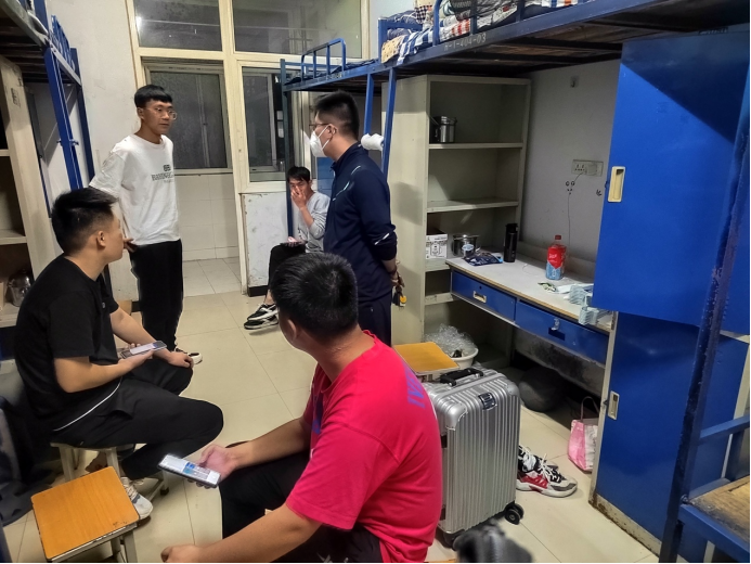 走访过程中,老师们在宿舍中与同学们亲切交谈,详细询问同学们在校生活、学习状况,提醒同学们注意用电用水安全、保持卫生整洁,增强安全意识,强化防盗、防骗意识,同时,了解了同学们国庆假期安排,叮嘱同学们要遵循公司疫情防控规定,做好防护措施,强调了佩戴口罩的重要性和必要性,提醒同学们认真做好每日健康打卡等常态化疫情防控相关工作。老师们还建议同学们,根据自身情况制定合理的学习计划,合理分配时间和精力,注意劳逸结合,通过自己的努力实现全面发展。