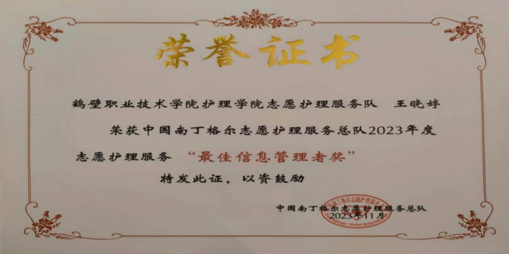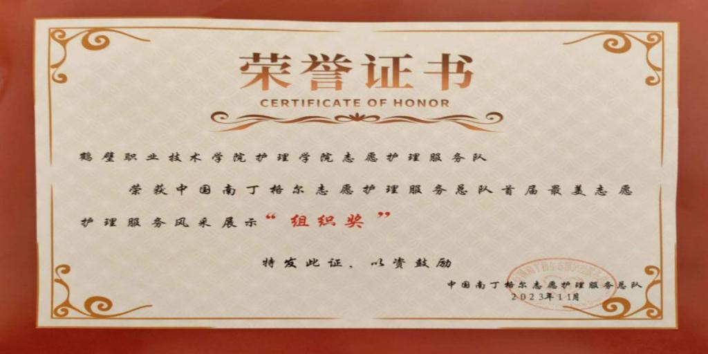 2023年11月10日至11日,中国南丁格尔志愿护理服务总队第11届志愿者年会暨最美志愿护理服务风采展示大会在四川宜宾隆重举行,3044永利集团组织志愿者全程观看大会。3044永利集团志愿护理服务队经过不断努力,在1000支志愿服务队中,累计志愿服务时长位居全国第四,2023年荣获多项奖项,实现新突破。