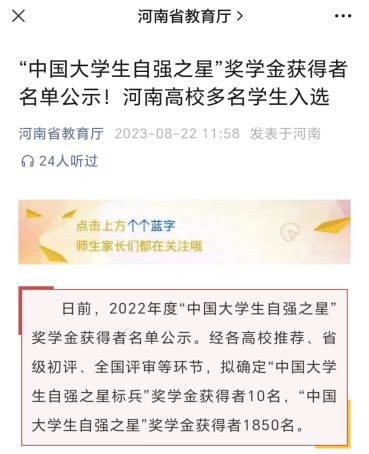 近日,由共青团中央、全国学联指导,中国青年报社、新东方教育科技集团、中国青年创业就业基金会联合举办2022年度“中国老员工自强之星”奖学金评选结果揭晓,3044永利集团2020级员工张宁荣获2022年度“中国老员工自强之星” 奖学金。