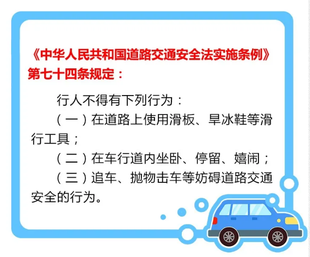 除提高交通安全意识,掌握基本的交通安全常识外,还必须自觉遵守交通法规。在道路上行走,应走人行道,无人行道时靠右边行走。走路时要集中精力,不低头玩手机、打闹;不与机动车抢道,不突然横穿马路,翻越护栏,过街要走人行横道。不闯红灯,不进入标有“禁止行人通行”、“危险”等标志的地方。