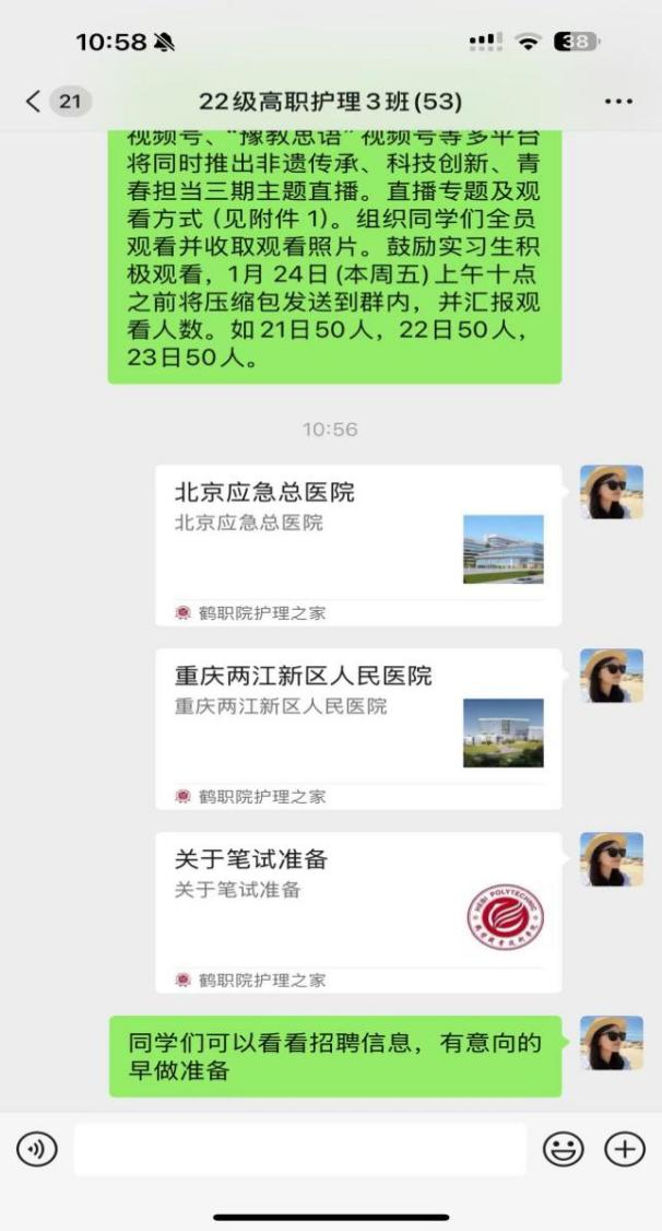 一是问卷摸清求职路,靶向指导助前行。精心设计并发放就业调查问卷,全面了解护理专业毕业生求职意向、技能短板、期望薪资等情况。及时掌握毕业生求职情况及心理状况,组建咨询团队,通过电话、微信一对一为同学们答疑解惑,助力毕业生高质量就业。