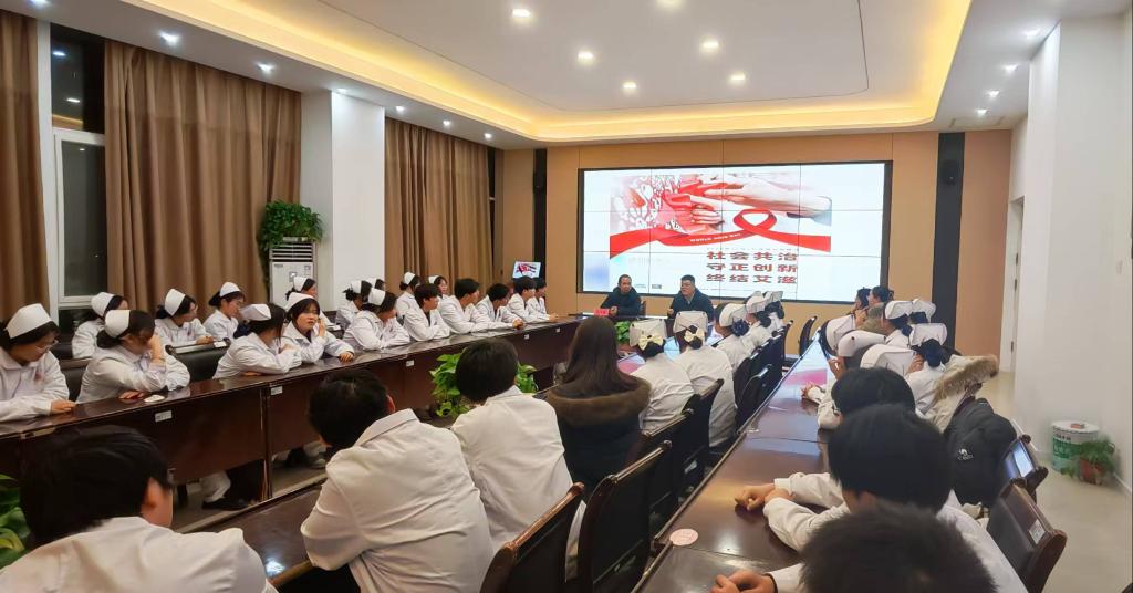 2025年12月1日,在第38个“世界艾滋病日”,3044永利集团联合鹤壁煤业(集团)有限责任公司总医院(鹤壁市第二人民医院),在B317举办了“知艾防艾,共筑健康”专题讲座,邀请鹤煤总医院检验科副主任医师史尊基担任主讲嘉宾。公司党政办公室、学工办、南丁格尔志愿服务分队相关负责教师及员工代表近百人,共同参与讲座。