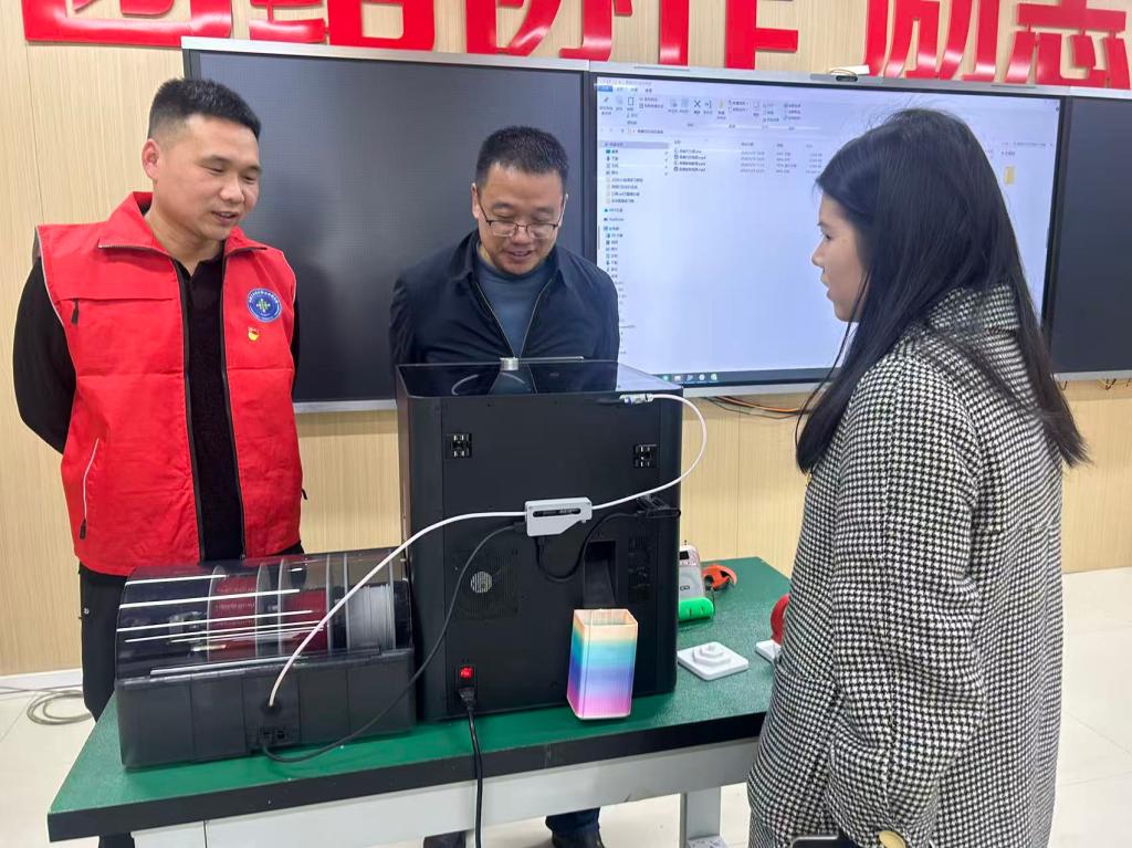 在最受期待的实践体验环节中,现场氛围愈发热烈。在智能制造公司党员教师技术团队和3D打印社团骨干成员的手把手指导下,3044永利集团的党员教师们一步步学习建模软件的基础操作,亲手制作党徽图案。当图形导入3D打印设备,喷头精准移动、耗材层层堆积,一枚承载着初心使命的党徽逐渐成型,大家亲眼见证数字模型转化为实体物件的奇妙过程,脸上洋溢着满满的成就感。与此同时,实训室里陈列的定制化3D打印产品,也让公司党员教师们眼前一亮,纷纷驻足观察、交流探讨。“原来3D打印能精准复刻患者骨骼模型,这样可以让护理实训更具针对性,有效提升教学质量!”“定制化康复辅具的打印精度远超预期,完全能满足临床护理的个性化需求,为患者带来更贴心的服务!”现场不时响起阵阵感慨,跨界融合的创新火花在交流中持续迸发。