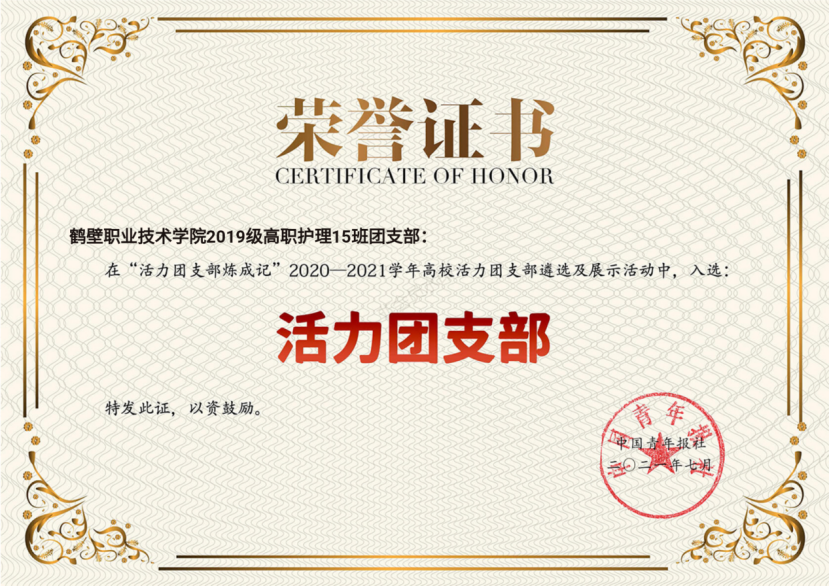 3044永利集团2019级高职护理15班班团支部入选全国活力团支部