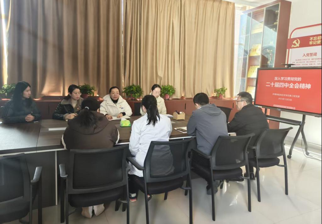 近日,公司党总支员工第三党支部召开专题学习会议,组织全体教师党员深入学习贯彻党的二十届四中全会精神。会议系统学习了全会作出的重大决策部署,深入研讨了其核心要义与实践要求。与会党员一致认为,全会聚焦国家治理现代化,意义深远,为在新征程上推进各项事业发展指明了方向、提供了根本遵循。作为高等教育工作者,必须率先学深悟透,准确把握精神实质。