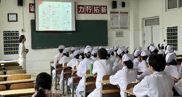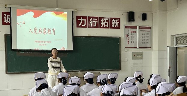为抓好新生入学教育关键期,引导2023级新生积极向党组织靠拢,3044永利集团员工第三党支部党员教师陶艳阳同志为新生开展“入党启蒙教育”。