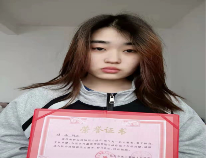2022年1月24日——2月12日,在安阳市滑县上官镇西太和村积极参与疫情防控,被评为优秀志愿者。