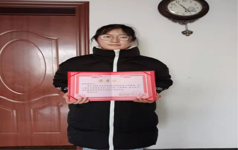 2022年1月21日——2月9日,在许昌市鄢陵县做志愿者,并被评选为优秀志愿者。