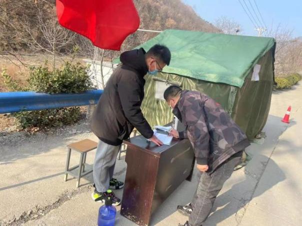 2022年1月10日在洛阳市栾川县白土镇铁岭村负责登记过往人员信息及检查核实双码。