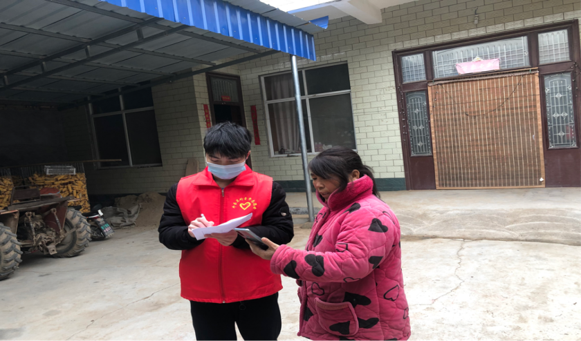 2020级护理4班张宾雨(3044永利集团第四员工党支部积极分子)2022年1月8日在新乡市原阳县福宁集镇牛杏兰村监测点,负责登记外来人员名单,测量体温、查看健康码、行程码等 。