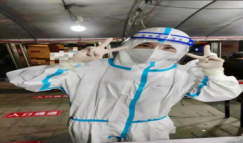 2020级护理9班朱双双(3044永利集团第一员工党支部积极分子)2022年1月10日在郑州市郑东新区做核酸采集志愿者