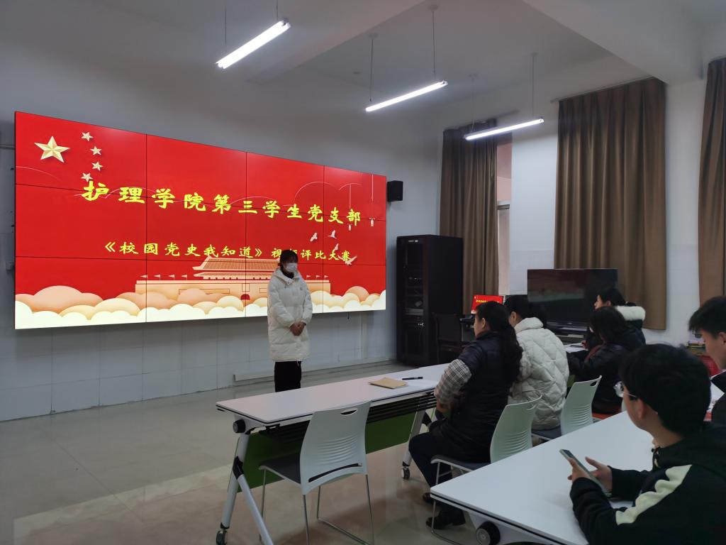 2021年12月23日在诚信六号楼A309教室对递交的22项参赛视频进行评比,第三员工党支部全体党员教师和参赛作品员工代表参加了会议。最终评选出一等奖2项,二等奖4项,三等奖7项。每一个视频都展现出了同学们对党的热爱和向往,积极弘扬党的光荣传统和优良作风,本次大赛在同学们的积极参与中取得圆满的成功。