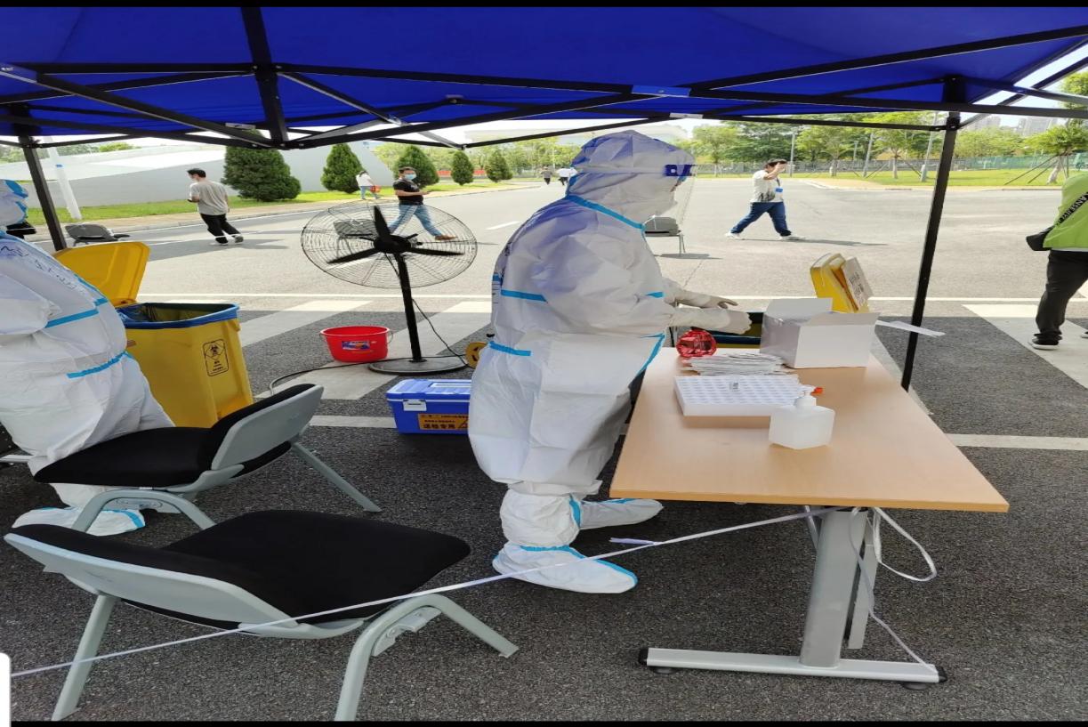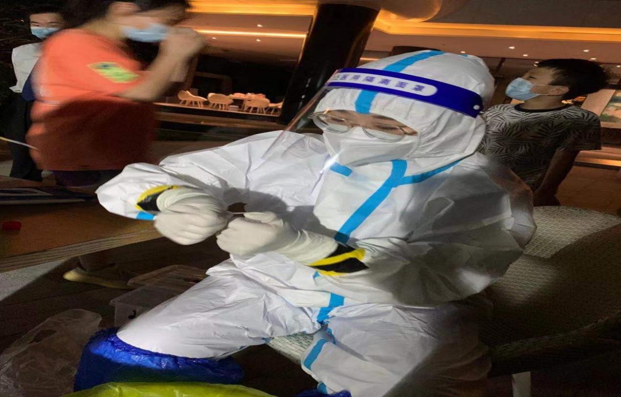 2019级护理19班 陈文婉(预备党员)在郑州惠济区协助河南中医药大学第一附属医院的老师做全民第五次核酸。