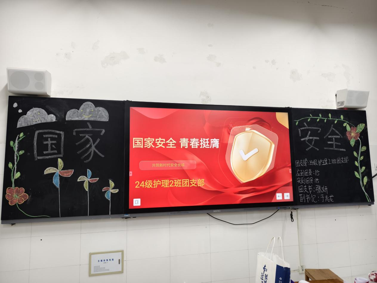 为深入学习贯彻总体国家安全观,引导青年学子增强国家安全意识、厚植家国情怀,在第十个全民国家安全教育日来临之际,护理公司团总支组织各团支部结合实际于2025年4月13日在诚信楼召开“国家安全·青春挺膺”主题团日活动。