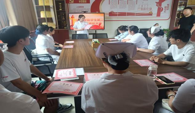 会上,党支部书记赵彩霞对前期支部工作进行系统性总结,全面复盘2025年上半年党建工作及实践成效;随后,对暑期工作重点进行详细安排,从理论学习与专业实践两大模块明确任务安排,强调要通过丰富多样的教育培养活动,全面提升党员发展对象和入党积极分子的思想觉悟与实践能力,充分发挥员工党员在护理专业学习与实践中的先锋模范作用;最后,依据支部量化积分考核结果,支部对在思想引领、志愿服务等方面表现突出的优秀同学,以及在支部日常工作中兢兢业业、表现优异的工作人员予以表彰。为同学们颁发荣誉证书,并对他们的辛勤付出与优异成绩给予高度肯定,鼓励全体同学以先进为榜样,积极向党组织靠拢,在学习和生活中充分发挥先锋模范作用。