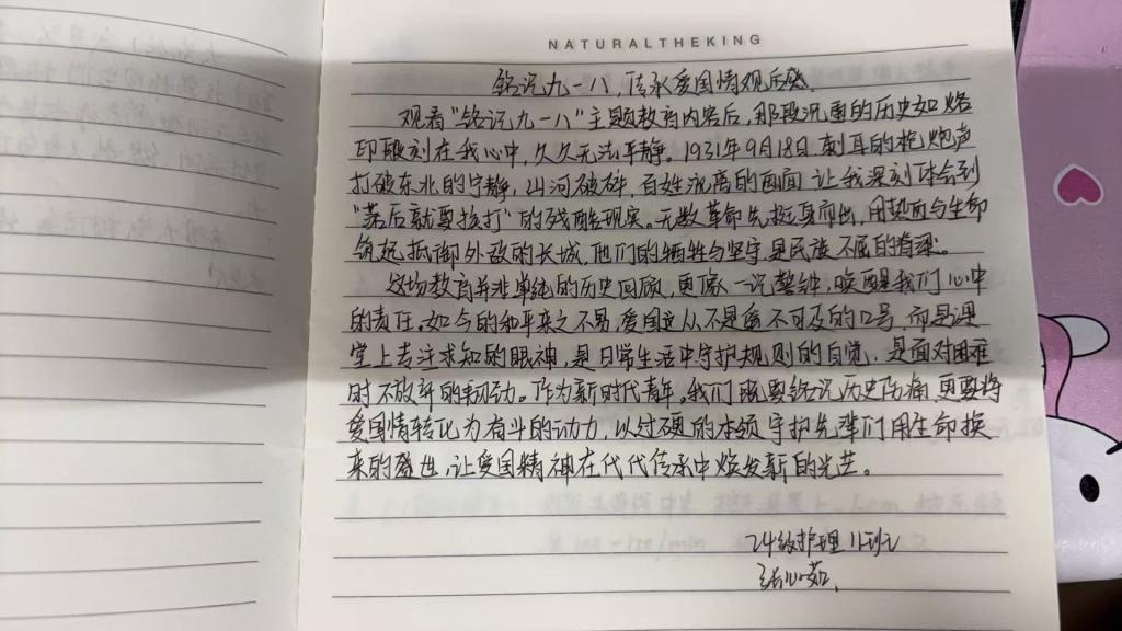 在活动中,同学们自行观看了《九一八事变真相》、《东北抗日联军》、《南京!南京!》等历史影片。观影过程中,随着影片画面的推进,大家仿佛穿越到那个战火纷飞的年代,看到了日本侵略者的残暴行径,也看到了中国军民奋起反抗的英勇无畏。同学们神情凝重,深刻感受到百年前国家蒙辱、人民蒙难的惨痛境遇。一段段直观的影像让抽象的历史变得鲜活可感,让“铭记”不再是口号,而是刻入员工们内心的情感共鸣。观影结束后,大家纷纷拿起笔,撰写观后感。在字里行间,同学们抒发着对历史的深刻感悟,既有对历史的敬畏,更有对责任的担当。有人感慨“落后就要挨打,吾辈当自强”,立志要刻苦钻研,以自身能力担当守护人民健康。有人致敬抗日先烈,是他们的牺牲换来了如今的和平,我们定会铭记历史,传承精神。一篇篇观后感,既是对历史的回望,也是对自身责任的明确,更是爱国情怀的生动表达。