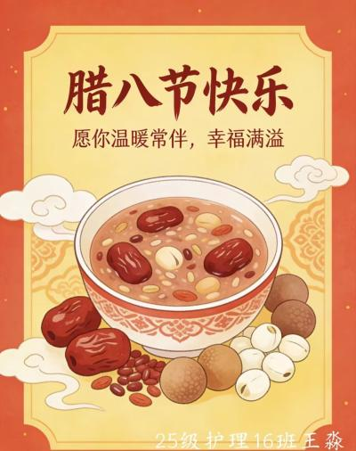 活动中,同学们以“寻腊八味、传文化魂、践医者心”为核心,亲手熬制腊八粥、腌制腊八蒜,在实践中体悟腊八民俗的文化内涵。结合护理专业特色,大家在食材搭配中融入冬季养生理念,讲解食疗功效;制作电子祝福卡片时,嵌入针对老年人、慢性病患者的健康提示,将节日祝福与护理关怀相结合。分享环节中,同学们结合专业感悟解读腊八文化,认为腊八粥的包容特质既契合中华优秀传统文化精髓,也彰显护理工作“精准呵护”的内涵。