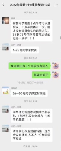公司高度重视“1+X”培训及考试工作,成立考试工作组,提前对员工进行培训和模拟训练,精心组织考务人员培训。为保证考试工作顺利进行,员工积极准备实操考试的用物及监控设备,老师深夜还在给员工交代注意事项。考试过程中,监考教师认真履职、考场纪律严明有序,在各部门的通力协作下圆满完成了考试任务,获得第三方高度认可。