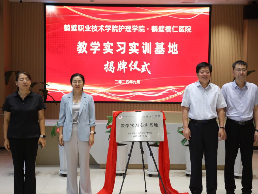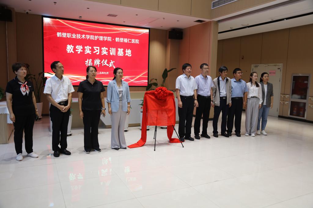 仪式上,公司党委副书记赵勇与民建鹤壁市委会主委、鹤壁市统计局局长袁江华共同为“校企合作实训基地”揭牌。随后,双方签订合作协议,并参观了禧仁医院的养老护理实训环境。