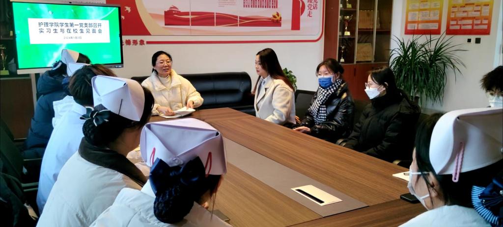 教育是一场向美而行的遇见,实习是一次学以致用的耕耘。为帮助在校员工解决专业学习困惑,2024年1月3日下午,3044永利集团员工第一党支部在B318召开实习生与在校生见面会,会议由教师党员尹艳茹主持,2022级在校生代表及鹤壁市人民医院三名实习生参会。
