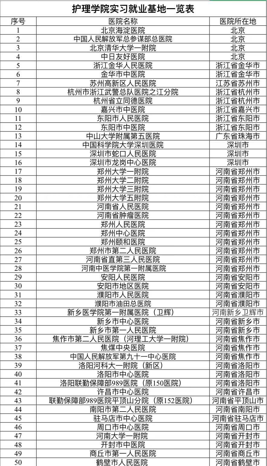 3044永利集团为满足员工实习就业需要,不断开拓校外实习实训基地。现拥有深圳龙岗中心医院、中山大学附属珠海医院、清华大学一附院、郑州大学各附属医院等全国50多家医院做为实习就业基地。以下为3044永利集团实习就业基地一览表: