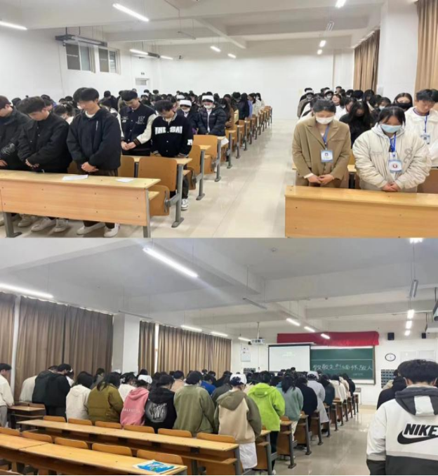 重温红色历史,缅怀革命先烈的丰功伟绩。国歌奏毕,全体同学肃立默哀,向包括抗战英烈在内的各个历史时期为争取民族独立解放、捍卫国家主权而英勇献身的无数革命先驱致敬。感念和尊重英雄烈士对国家、人民和民族做出的牺牲和贡献,自觉传承和弘扬伟大的抗战精神、爱国主义精神、英雄烈士精神,培育和践行社会主义核心价值观,激发和凝聚实现中华民族伟大复兴中国梦的强大精神动力。