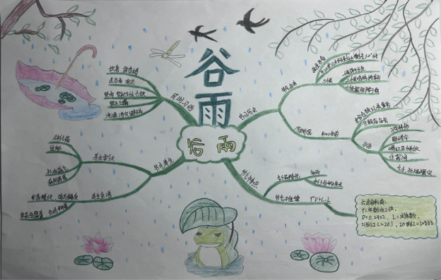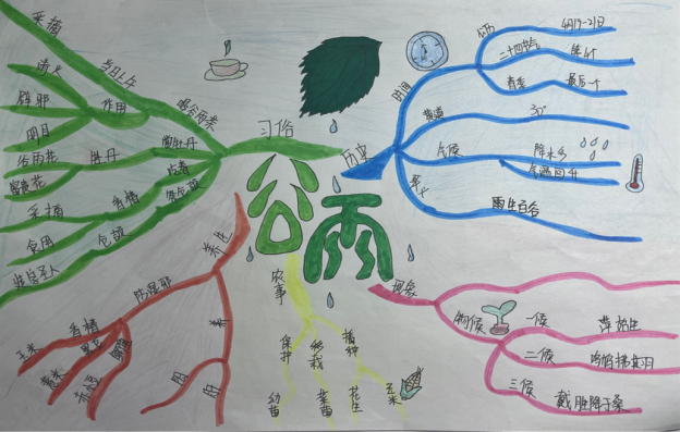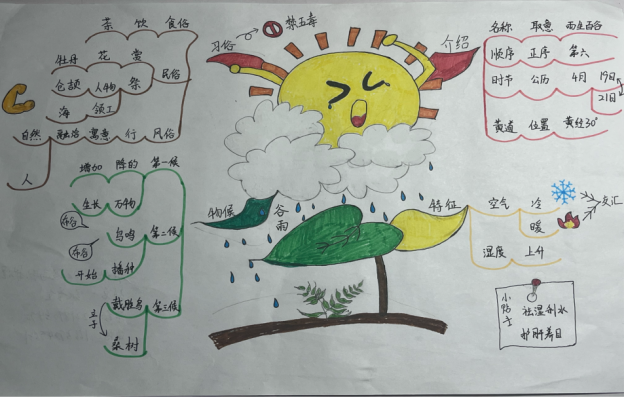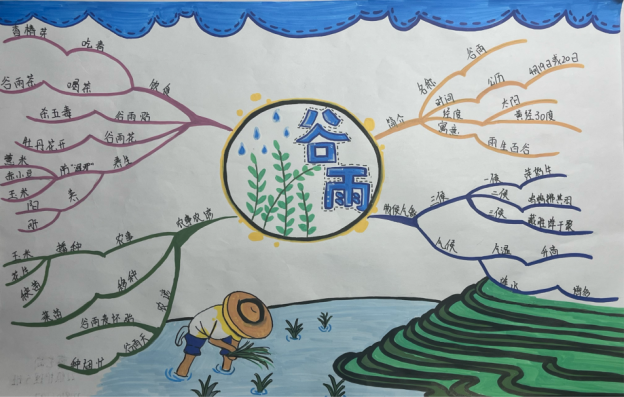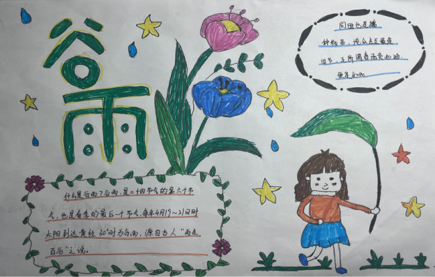 活动中,同学们围绕谷雨广泛搜集素材,巧妙设计版面,体验农事播种的过程,感受自然生命的力量,以实际行动传承和发扬中华优秀传统文化。也寓意着在这万象更新的谷雨时节,同学们用汗水浇灌理想的新芽,在今后的时光不负韶华,砥砺前行。