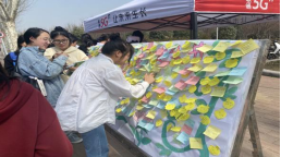“爱心签语”环节,女生们在便签上写下了自己的心愿与祝福,贴到了旁边的心愿墙,既有趣味性,也让人感到暖心。