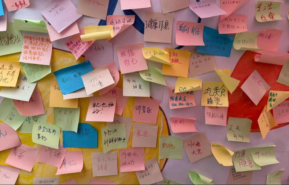 活动现场设置三大互动板块,形成“认知—表达—释放”的闭环体验。在“压力溯源区”,图文并茂的展板系统剖析学业竞争、社交焦虑等压力根源,引发员工驻足深思;于“情绪画布站”,参与者以色彩为语言,将抽象压力具象为可触碰的视觉符号,通过撕毁画作完成象征性宣泄,多名同学反馈“撕掉标签的瞬间,仿佛卸下了心头重担”;而“静心赋能角”则通过冥想引导与互助分享,让参与者在舒缓音乐中重构内心秩序。全程穿插专业教师指导,确保活动兼具趣味性与科学性,最终回收的200余份反馈表中,超90%参与者表示“获得切实有效的解压方法”。