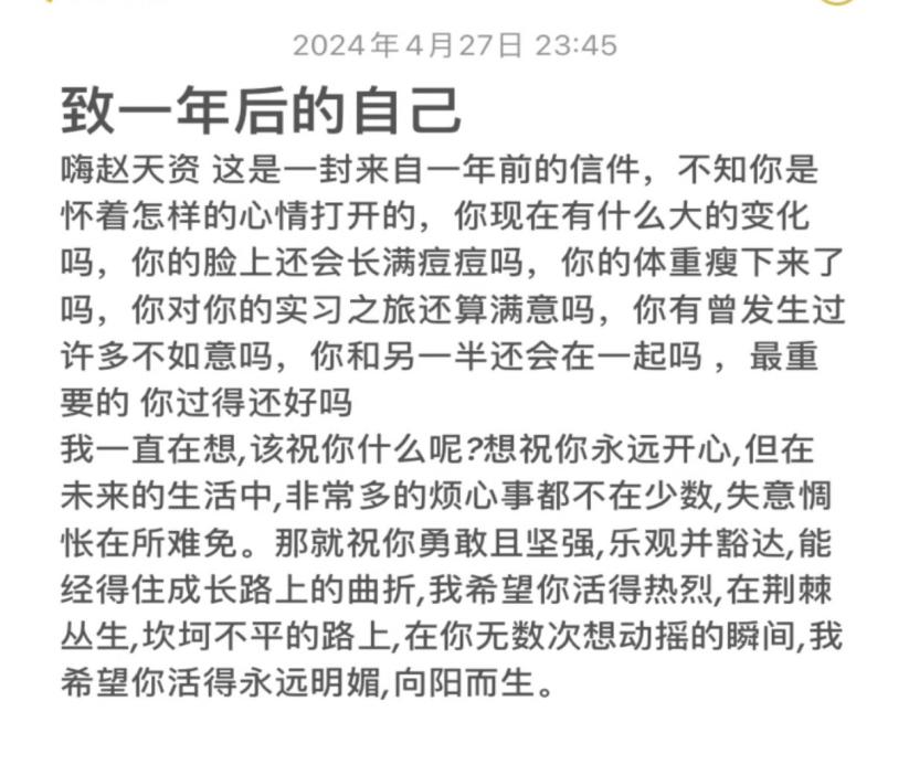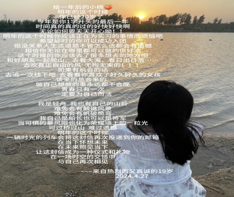 为帮助员工更好地度过大学这段宝贵的时光,提高心理素质,丰富校园文化生活,2024年4月22日-30日,公司开展“时光胶囊传递”活动,以时光胶囊为载体,开启与未来的对话。