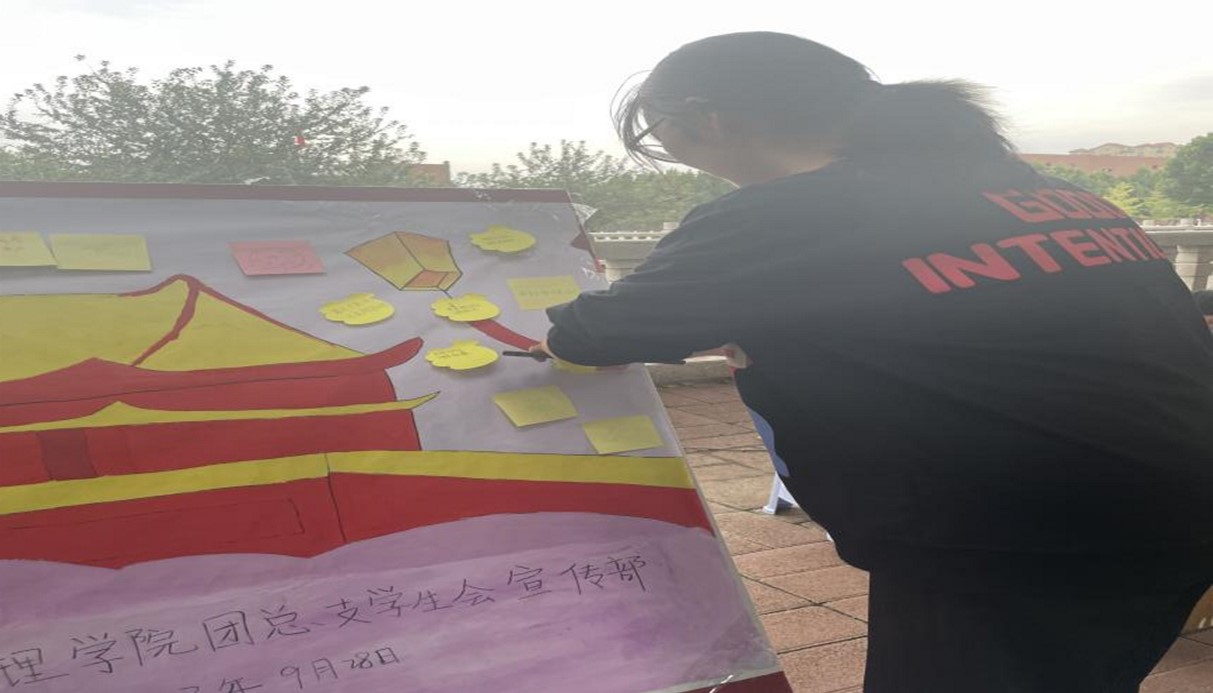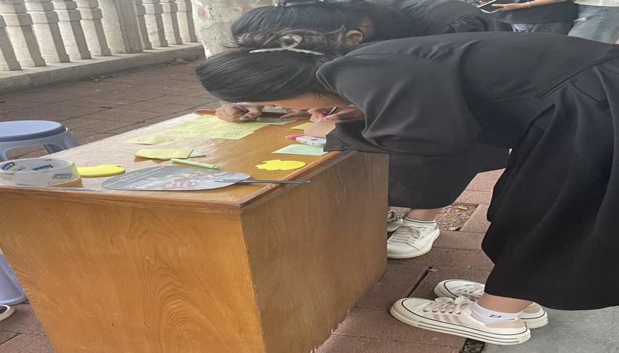 以挚爱之笔,书爱国之情。趣味活动的开展,营造了欢乐温馨、青春向上的环境氛围,彰显了青春风采,丰富校了园生活。活动期间,同学们积极参与,热情洋溢,用挚爱之笔为祖国写下属于自己的一份留言。