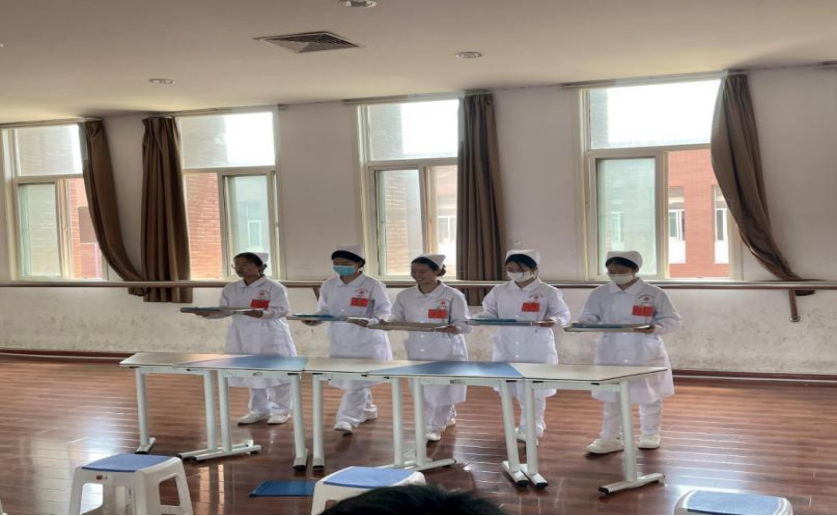 本次比赛从仪容仪表、行为规范、业务素质和礼仪举止四个方面进行综合评分。参赛个人就站姿、坐姿、行姿、蹲姿、端治疗盘、持病历夹等方面进行护理礼仪展示。护生们在比赛中积极向上、青春活力,展现了良好的礼仪素养与职业形象。