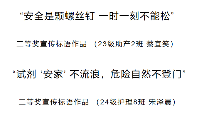 宣传标语的评选同样精彩,或运用巧妙的对仗,或采用幽默的表达,让安全理念深入人心。共评选出一等奖作品1项,二等奖作品2项,三等奖作品4项。
