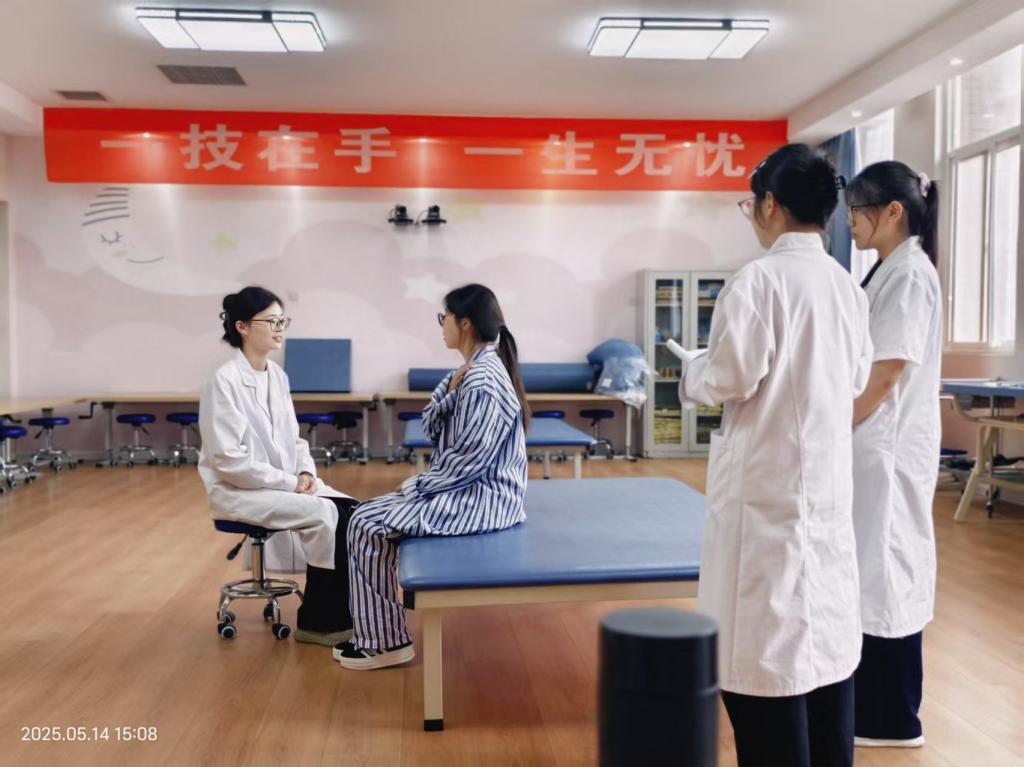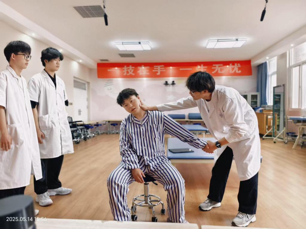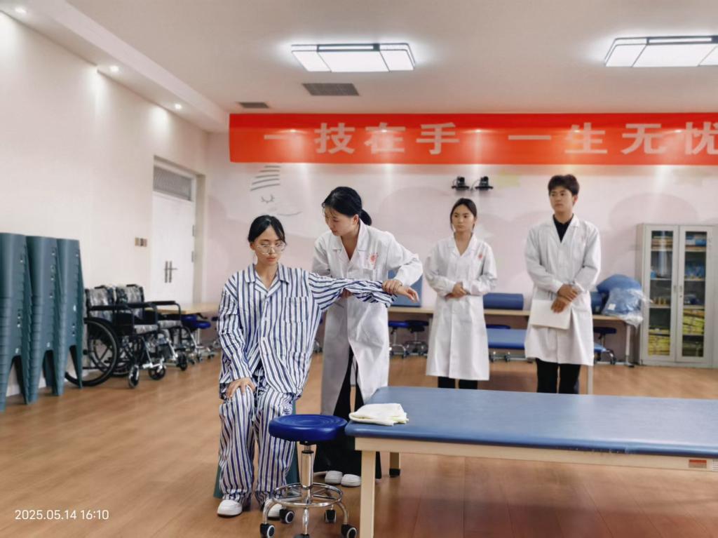 展示会场二设置在实训室,在海棠园五楼康复实训室B505室开展了2025年康复治疗技术专业技能校级比赛,参赛选手热情高涨,以饱满的态度展现了康复专业的各项技能,对脑卒中、肩周炎、颈椎病等案例进行了问诊、评定和康复治疗,通过竞赛,使员工能深刻认识到本专业理论与实践密切结合的特点,促进员工勤奋学习,苦练基本功,展示员工的岗位通用技术、综合职业能力和职业素养以及团队协作精神,提升高职康复专业人才培养的水平,提高康复职业教育的社会认可度,促进康复专业又好又快地发展,为员工今后实习、就业奠定牢固的基础。