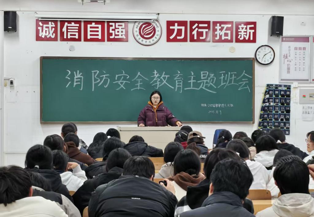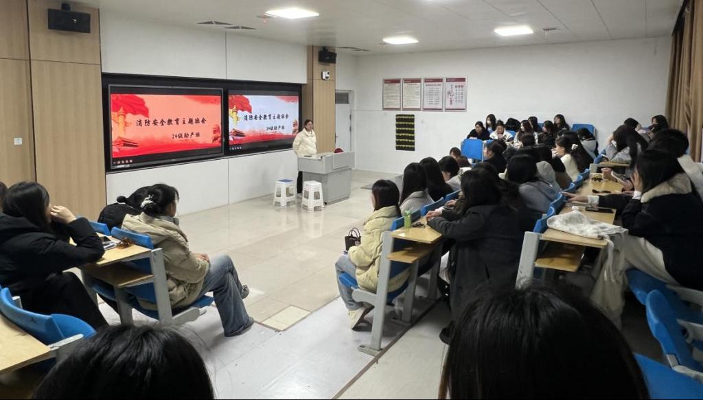 班会上,辅导员通过播放警示教育片、剖析校园火灾案例等形式,直观展现宿舍抽烟、违规用电、堵塞消防通道等隐患的严重危害,重点讲解宿舍、实验室等重点区域的防火要点,适时普及火灾预防常识、正确报警方法、初期扑救技巧及紧急逃生要点等。针对各专业员工学习生活特点,特别强调实验试剂规范存放、电器设备安全使用等专业相关安全知识。互动交流中,同学们围绕“如何快速报警”“初期火灾扑救要点”等问题积极参与,氛围热烈。