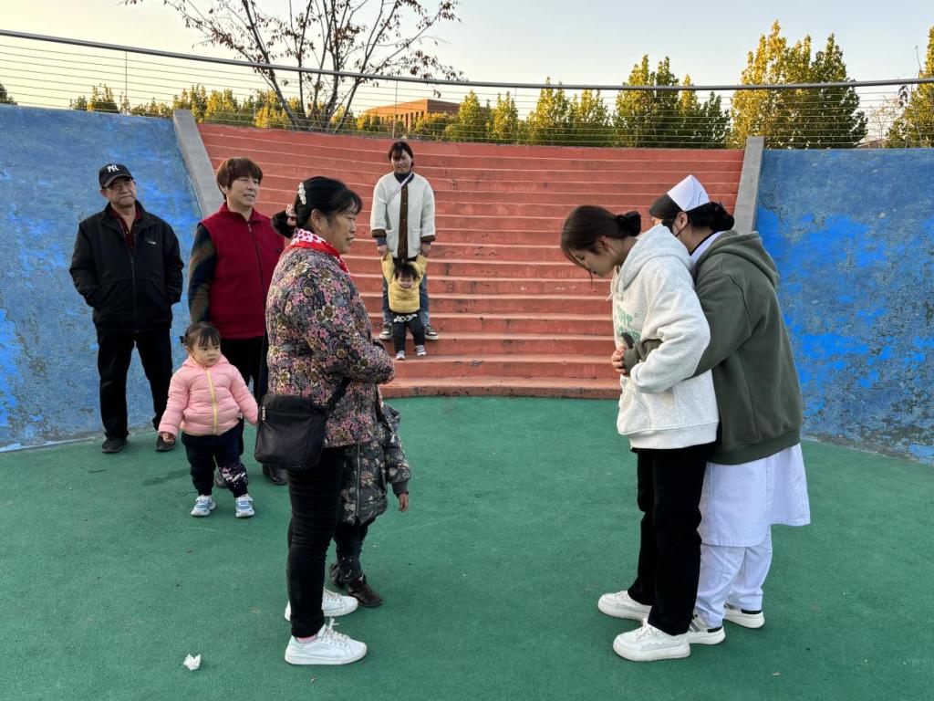 宣教过程中,志愿者向居民普及海姆立克急救法相关知识,从什么是海姆立克急救法、在什么情况下可以实施海姆立克急救法等方面进行详细讲解,强调了学习海姆立克急救法的重要性。随后,志愿者向在场居民讲解海姆立克急救法的操作要领及注意事项,使用模型人向居民展示操作步骤,运用“一问一答”的方式引导现场居民主动思考、积极参与。在实操环节,志愿者对在场居民进行一对一指导。大家热情高涨、踊跃参与,现场互动频繁,氛围和谐融洽。