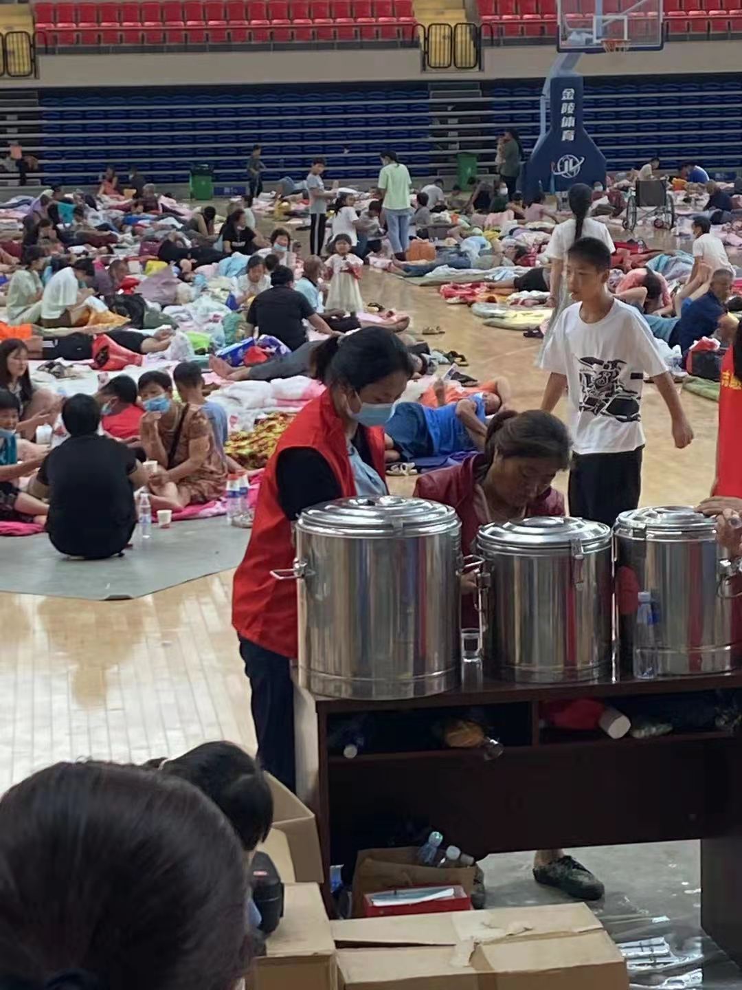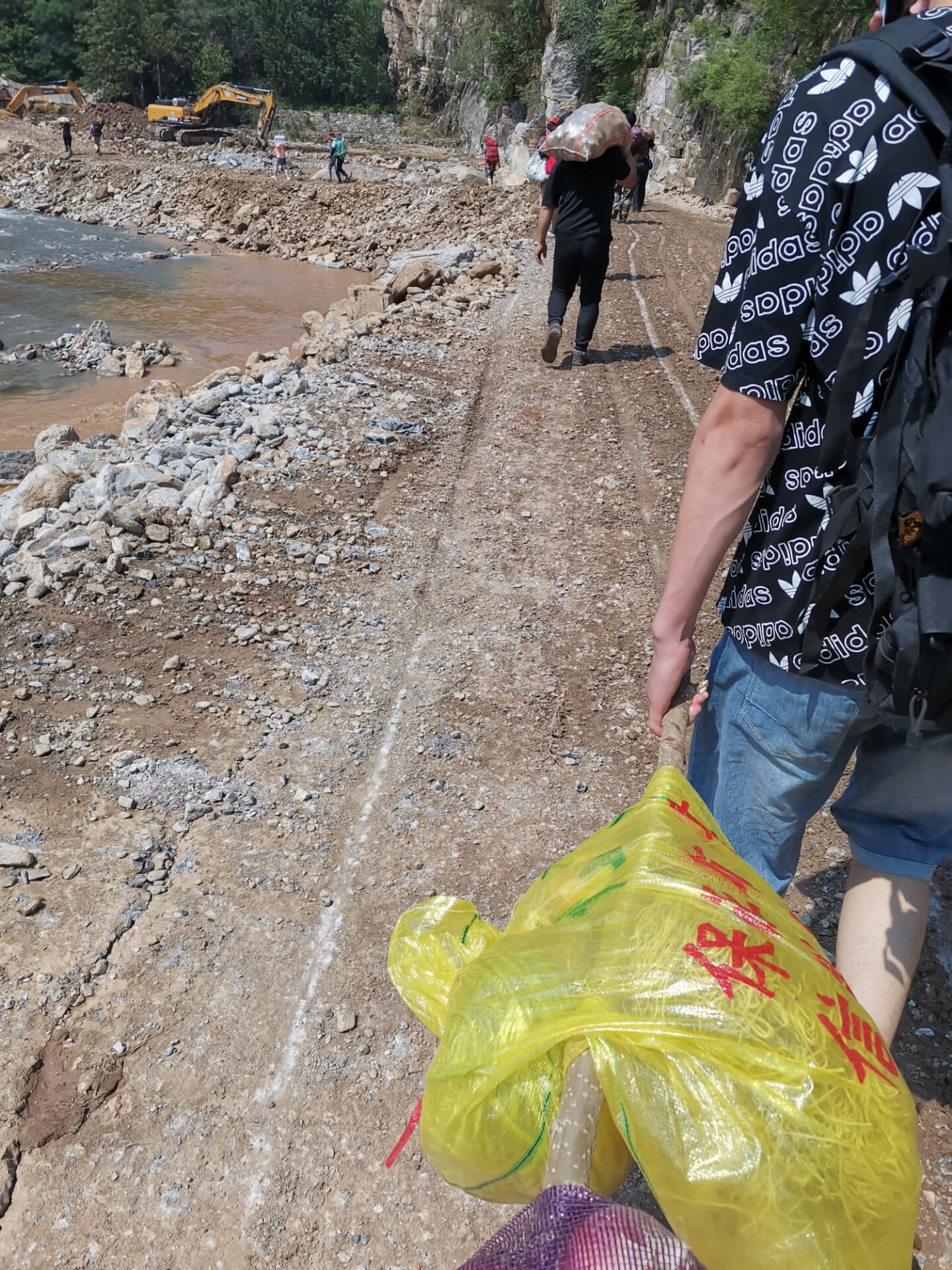 20级ICU班张世乙,7月24日在洛阳市嵩县滨河公园参与抗洪救灾志愿者服务活动,为受灾群众集中搬运救援物资。
