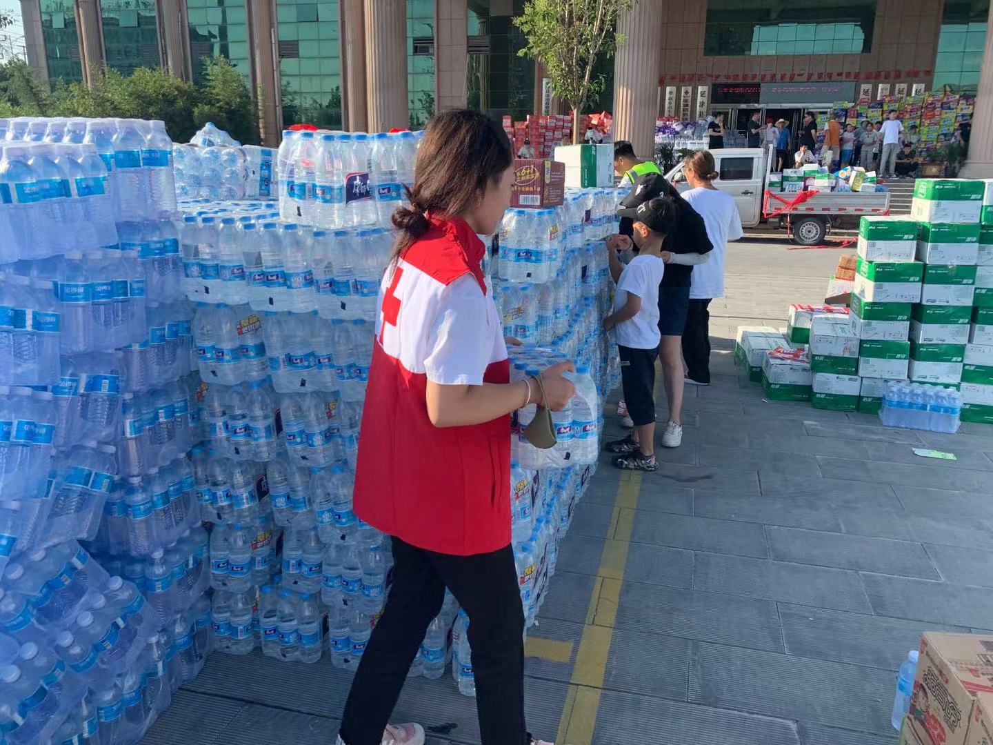 20级助产1班胡一涵,7月24日在许昌市长葛市报名参加了红十字协会的志愿者服务队,在长葛市体育馆为受灾群众搬运救援物资、发放饭菜。