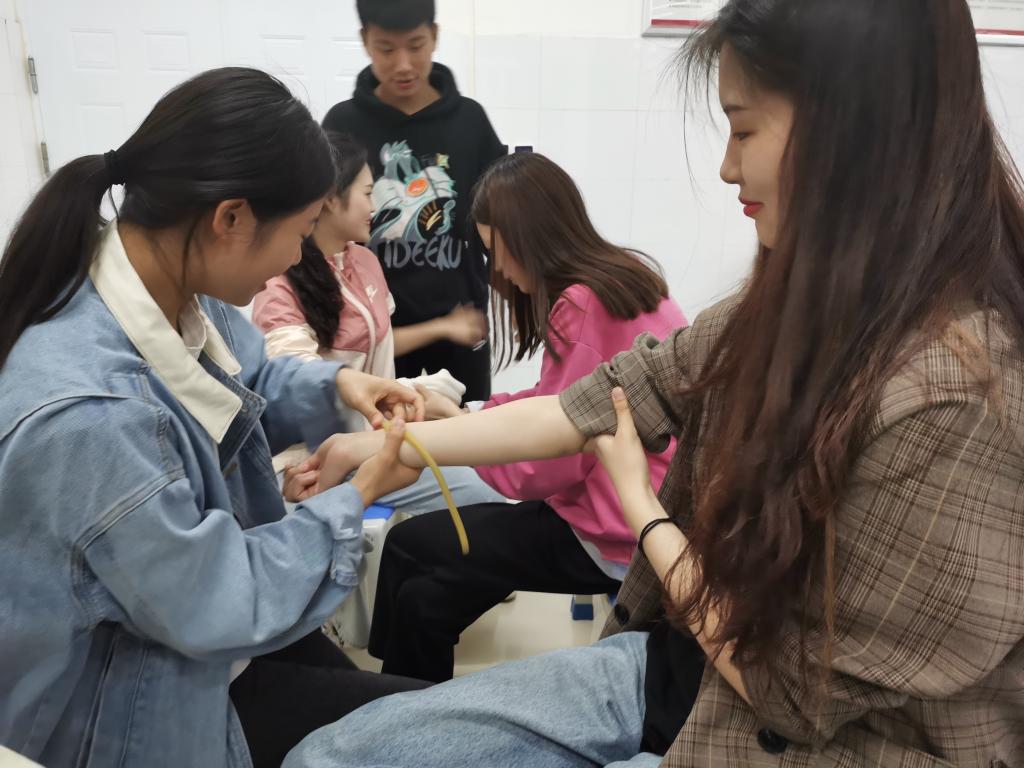 4月19日晚,在海棠苑诚信6号楼A307、A308、A310由35名志愿者对经济管理公司201名员工开展了“外伤包扎急救知识培训”。