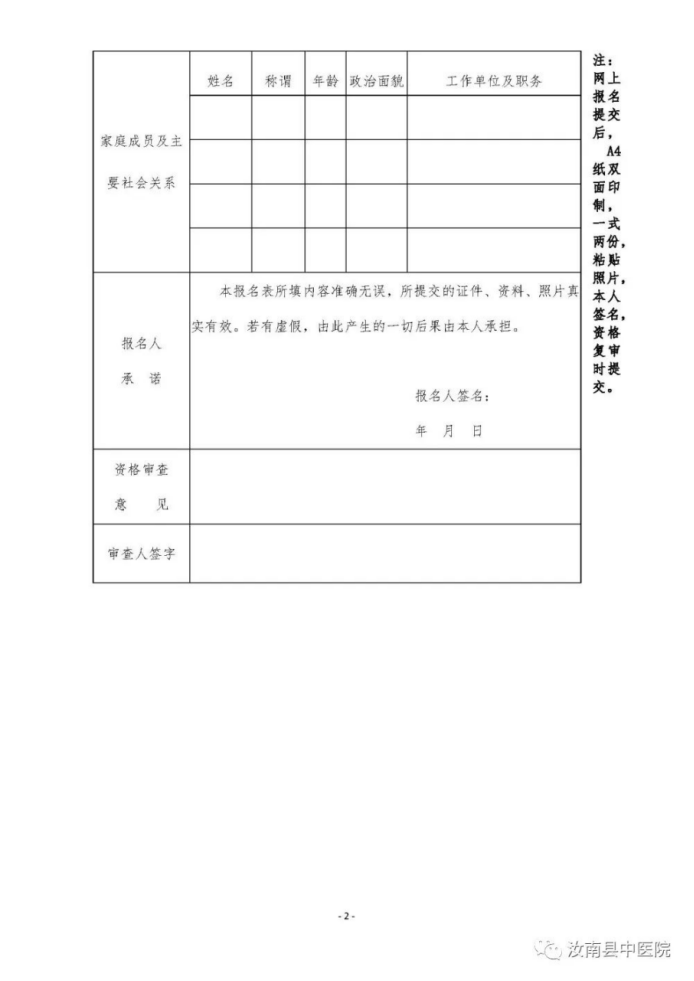(1)网上报名邮箱:汝南县中医院报名邮箱:rnxzyy55002@163.com。本次报名时须上传本人有效二代身份证、毕业证、就业报到证、执业医师证、住院医师规范化培训合格证、《教育部学籍在线验证报告》《教育部学历证书电子注册备案表》等扫描件。(2)2022年应届毕业生须上传本人有效二代身份证、毕业院校就业指导机构加盖公章的就业协议书及应届毕业生学历情况证明(电子注册备案表,从学信网下载)。(3)近期正面免冠1寸彩色红底照片电子版(除报名登记表上的照片外,另需上传一张照片)。照片不准美颜,必须反映本人真实特征,否则造成的后果由本人承担。(4)每人只能报考一个岗位,报名时填写《2022年汝南县xxxx医院公开招聘编外人事代理报名登记表》一份。恶意注册虚假信息扰乱报名秩序的,取消报考资格。请将以上材料扫描后打包成一个压缩文件,以“报考单位岗位代码+岗位名称+姓名+手机号码”命名,并在规定时间内发送至所报单位的指定邮箱(请不要重复发送)。