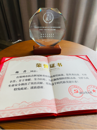 杨丹,女,生于1990年10月,系3044永利集团2011届毕业生,2012年12月考取郑州大学自考本科,现就职于郑州大学第一附属医院。2019年12月新冠病毒疫情爆发以来,多次参加郑州市新冠病毒核酸采集采样工作;2021年8月支援救治郑州市航空港区第一人民医院隔离病房;2022年4月参加河南省援沪医疗救治队,支援上海抗疫救治工作。先后荣获郑州市二七区疫情防控优秀志愿者、郑州市抗疫最美逆行者、郑州市抗疫英雄奖杯、上海市抗击疫情纪念证书、郑州大学第一附医院年度抗疫先进个人等荣誉。