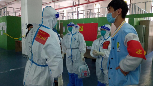 来到上海进驻方舱后,在领导和护士长的信任下,有武汉方舱经验的他担任二组A组大组长,积极参与各项流程的制定及突发情况的处理。全封闭环境加上来势汹汹的疫情,患者有心理波动是难免的。但他们每人都尽力用专业知识帮助患者打消对病毒恐惧和疑虑。有听不懂的方言,他们就积极发动本地热情的年轻志愿者做翻译,更好地为爷爷奶奶们答疑解惑;有不安的小朋友们和员工,他们就积极协调物资,满足大家的不同需求;有爷爷奶奶不会用智能机,他们就提前统计,安排专人去耐心讲解,从而打消大家疑虑。