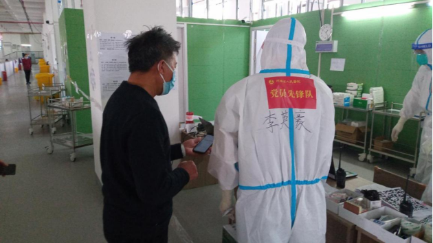除此之外,他还是队员安全的守护神。在驻地酒店,他积极参加物资分发任务,并负责好大家驻地酒店的核酸检测,时刻关注每一位战友的心理变化。队员每次进病房前,他都会一个一个的检查,口罩的气密性,口罩系带的位置都反复仔细查看。在一切所能想到的地方保障好大家的安全。
