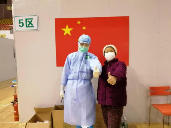 5月8日,他们组短时间内收治8名患者,其中有一位100岁的奶奶和两位盲人爷爷奶奶。看到这种情况,他们组集体出动,主动表明身份,推轮椅,拿行李,安排床位,介绍房间布局并排班给老人喂饭。爷爷奶奶很是感激,非要给红包被他们婉拒。37床奶奶有压疮,他们每次更换药时,奶奶的女儿都对母亲持续变好的情况表示感谢,为省医护理水平点赞。